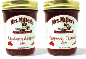 ✅ 2-Pack Convenience – Includes two 9 oz jars of Mrs. Miller’s Red Raspberry Jalapeño Jam.