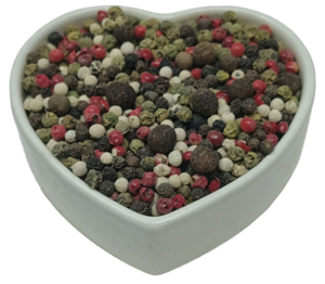 Premium Blend: Black, white, green, pink peppercorns + allspice